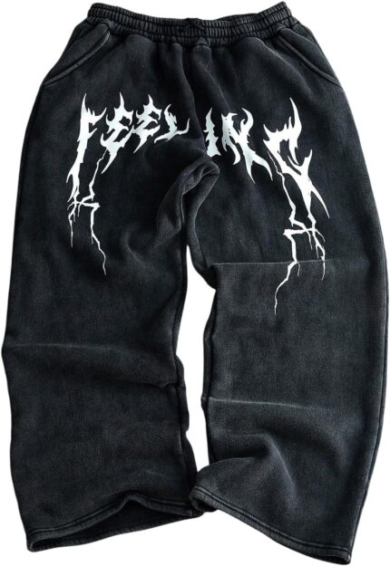 SOLY HUX Men’s Baggy Sweatpants Y2k Wide Leg Drawstring Waist Emo Pants Vintage Gothic Streetwear