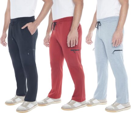 Mens Sweatpants 3-Pack Tech Fleece Cargo Active Athletic Pants with Cargo Zipper Pockets and Drawstring. Sizes: XS to 3XL.