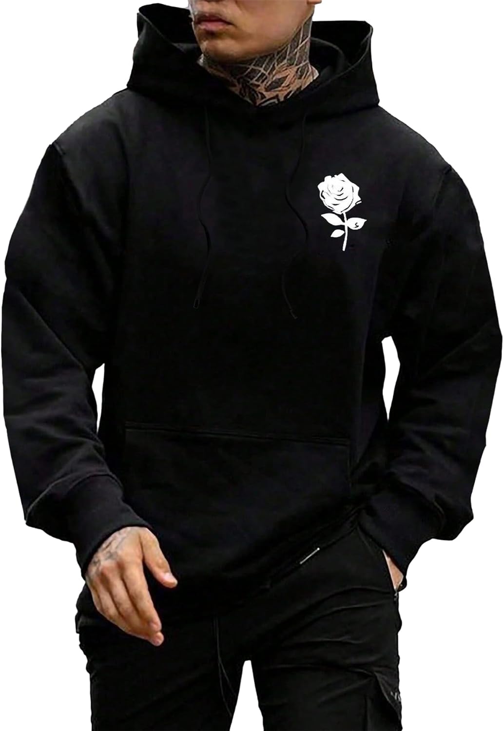 Floerns Men’s Graphic Print Long Sleeve Drawstring Hoodie Pullover Sweatshirt