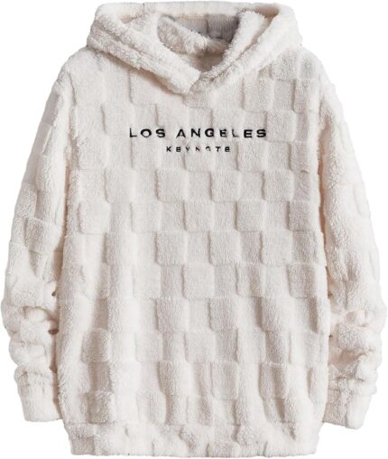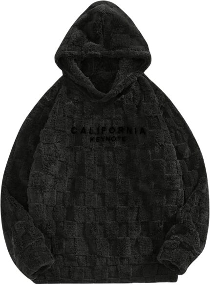 Verdusa Men’s Fuzzy Pullover Hoodie Long Sleeve Letter Embroidery Hooded Sweatshirt